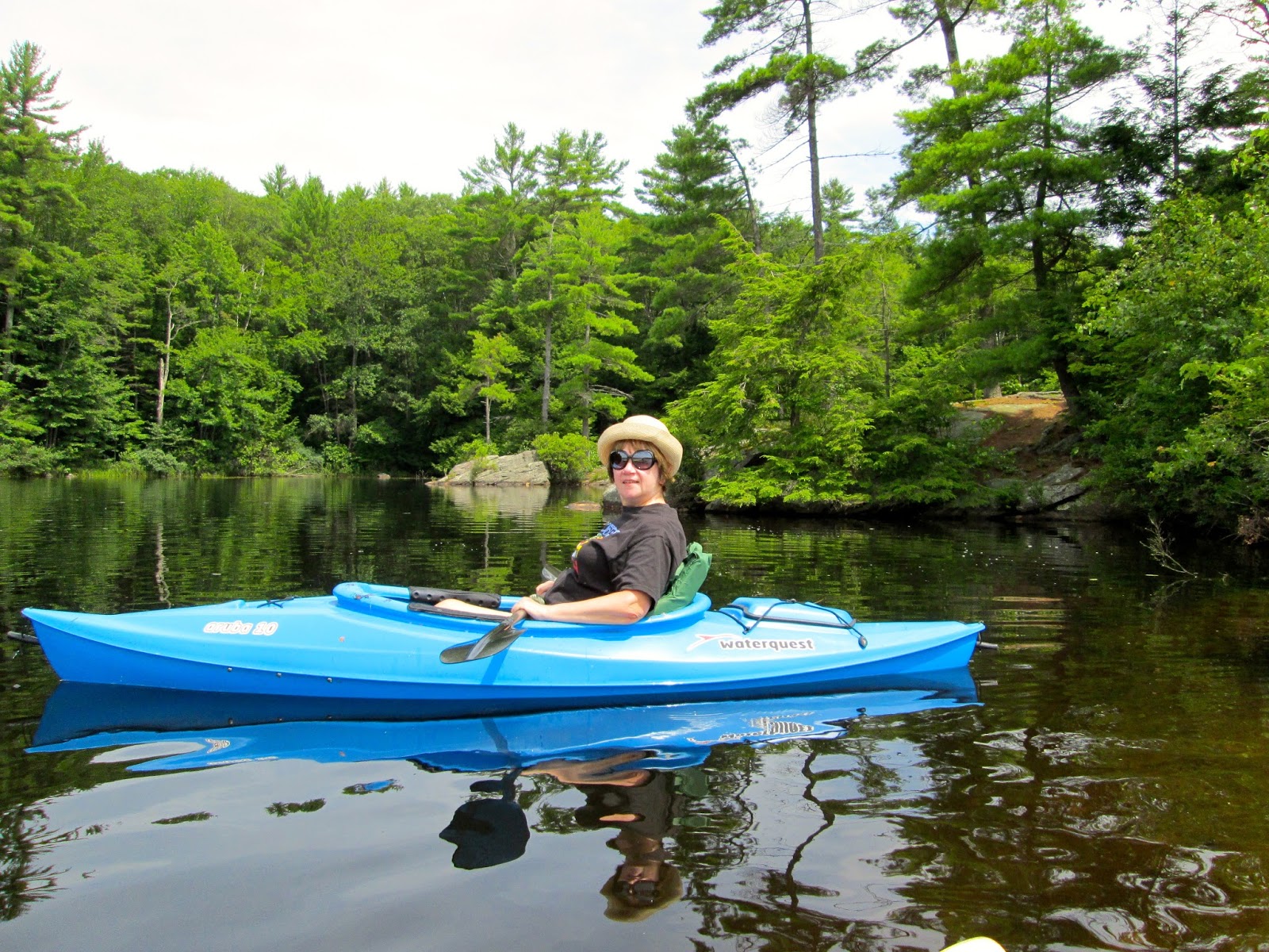It was my idea that we would savor the moment. By that, I mean that we would paddle about the pond ... Anne at a respectful distance from the bank. I, meanwhile, would paddle nearer the bank intermittently lobbing my topwater lure at each brush pile and weed patch in hopes of seducing a bass or pickerel to strike. Soon, however, a steady stream of lunch comments interrupted my concentration. The last straw was Anne's comment that she was beginning to feel nauseous due to lack of food.